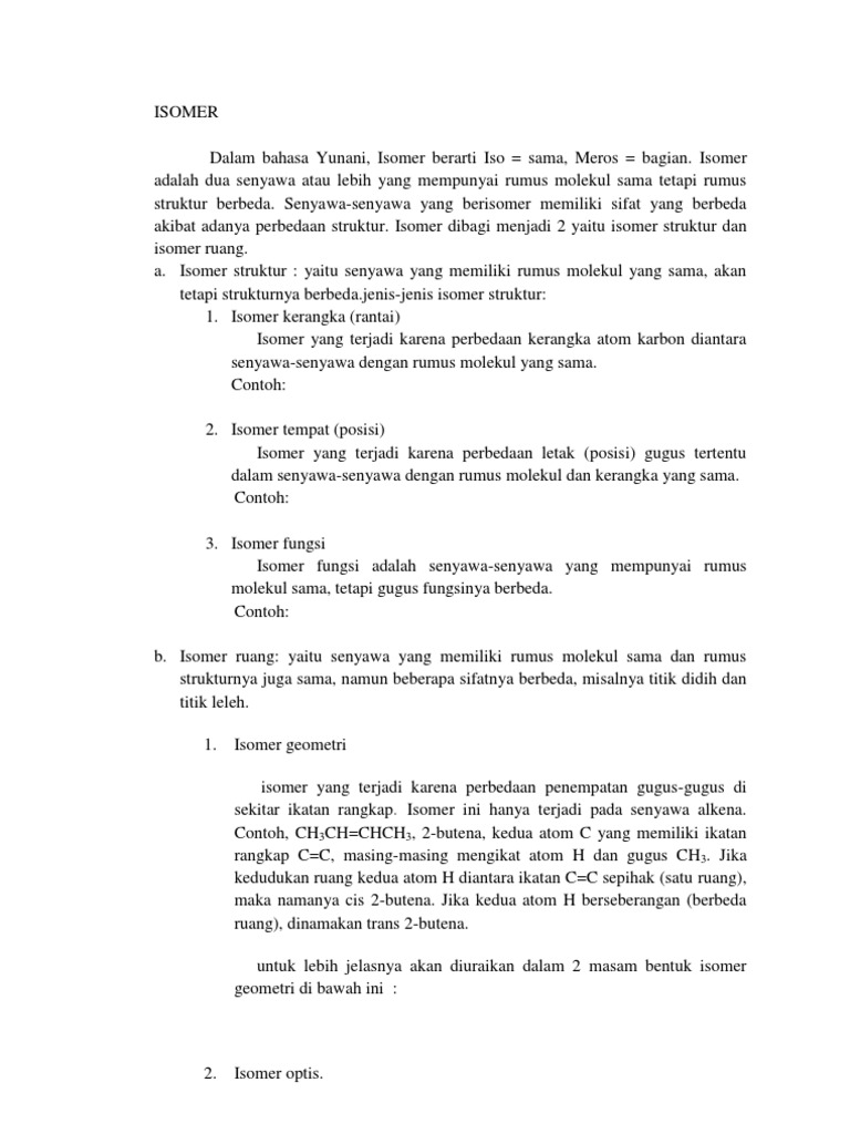 Berikan Penjelasan Tentang Jenis Jenis Isomer Beserta Contohnya Brainly Co Id