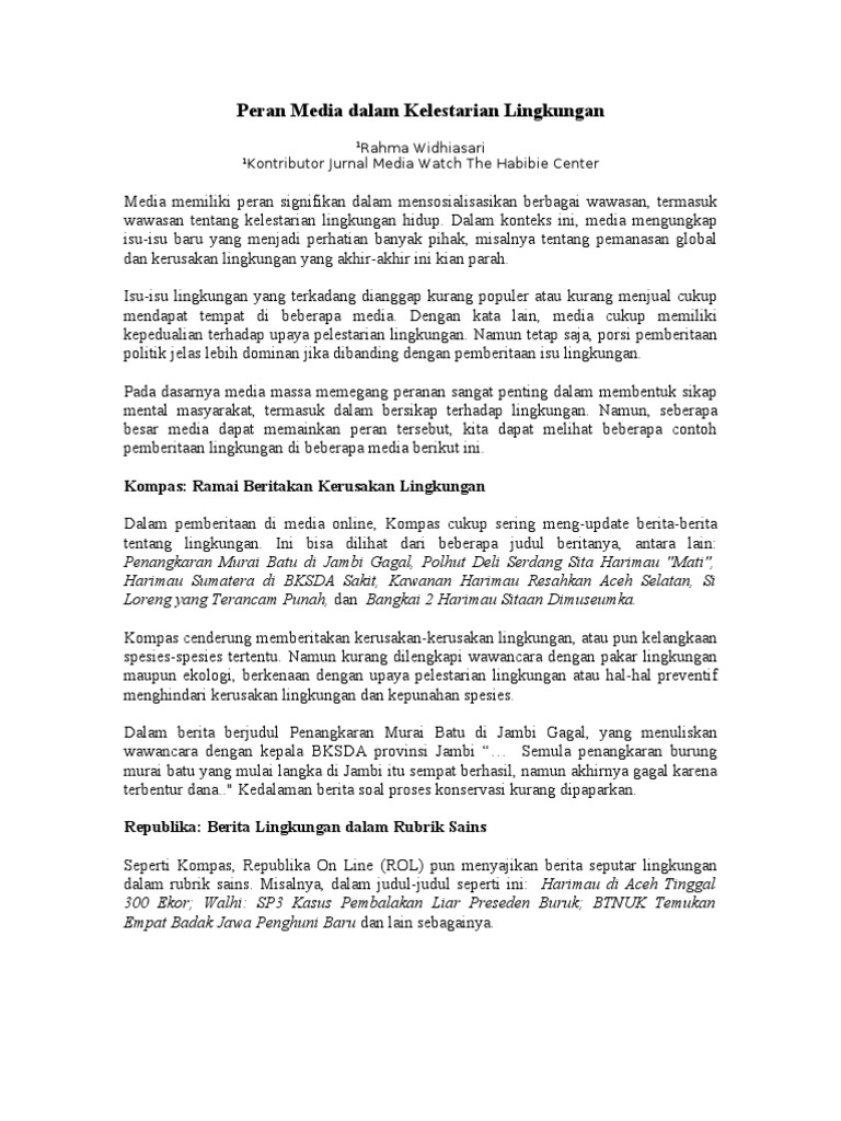 Pdf Jurnalisme Lingkungan Yang Sadar Lingkungan