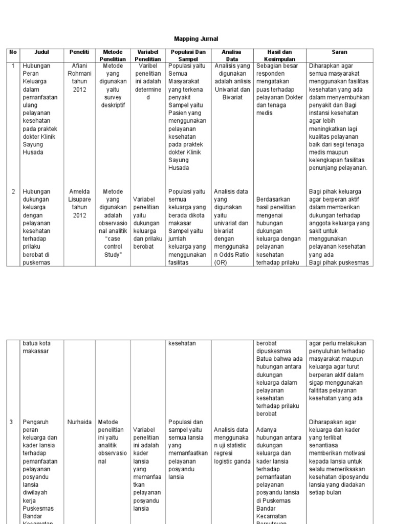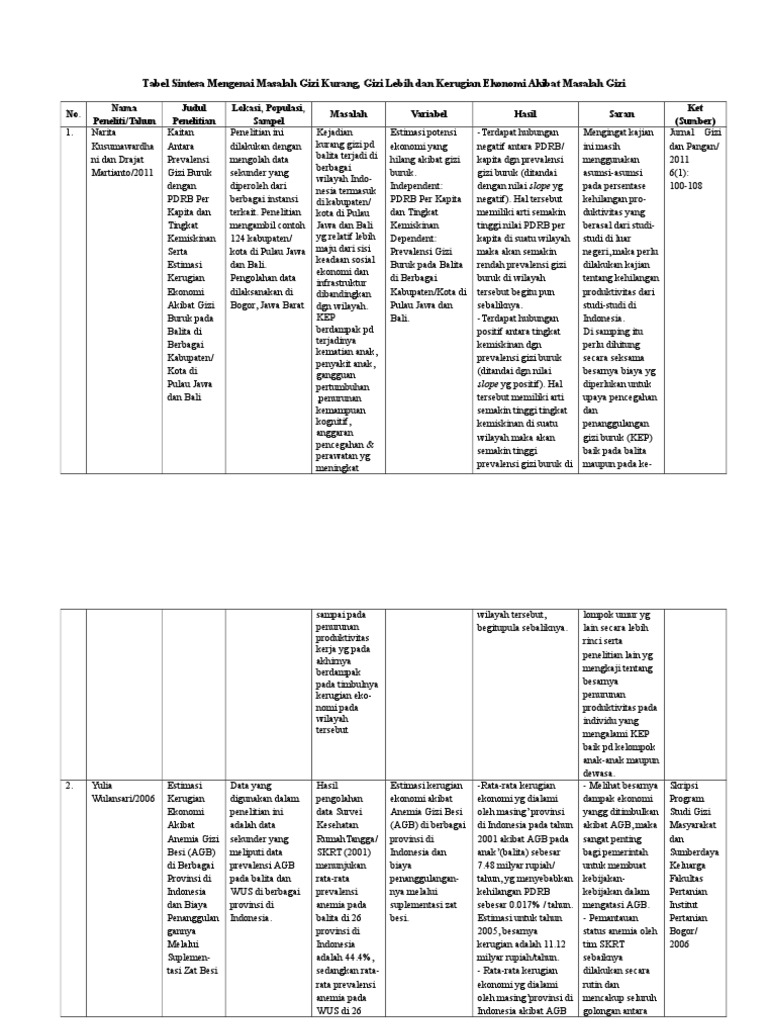 Realitas Kesehatan Contoh Tabel Sintesa