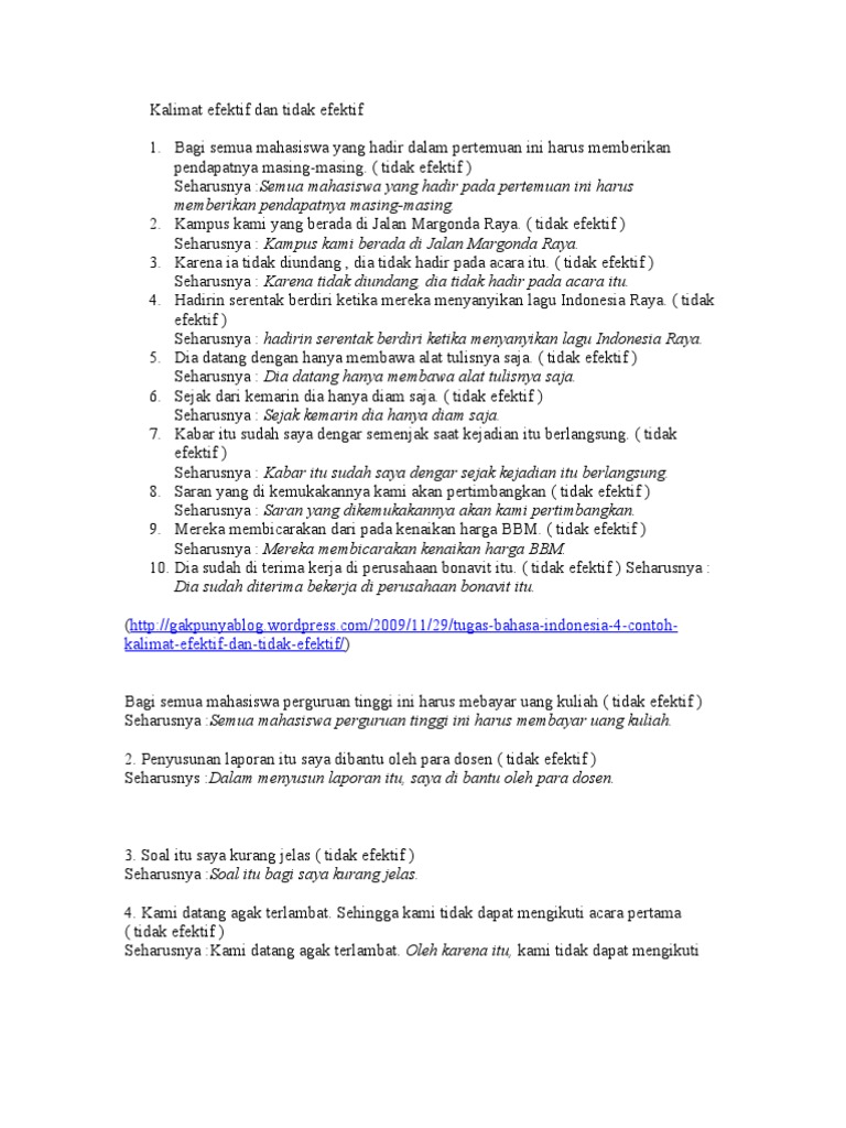 Contoh Kalimat Efektif Dan Tidak Efektif
