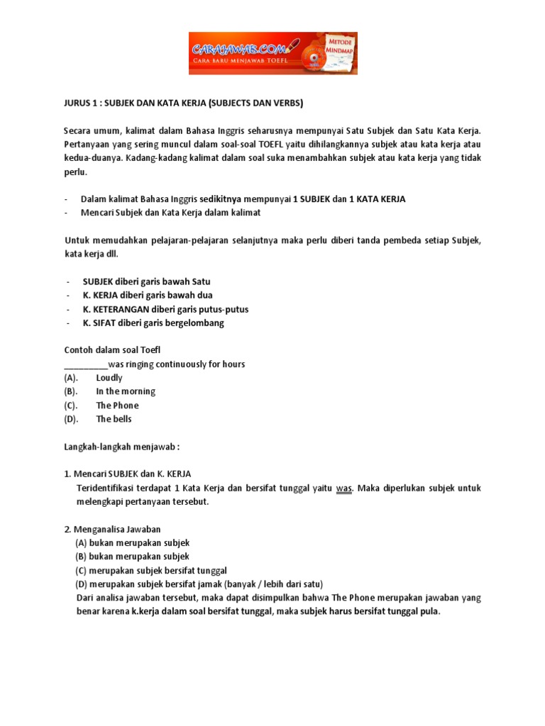Jurus 1 Subjek Dan Kata Kerja Subjects Dan Verbs