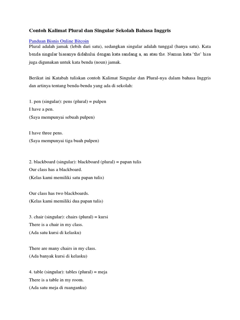 Contoh Kalimat Plural Dan Singular Sekolah Bahasa Inggris