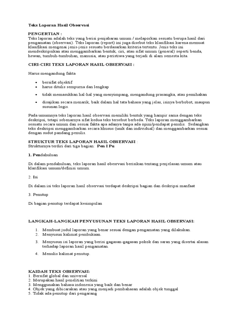 Contoh Teks Laporan Hasil Observasi Docx