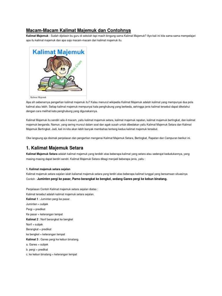 Macam Macam Kalimat Majemuk Dan Contohnya Pembelajar Net