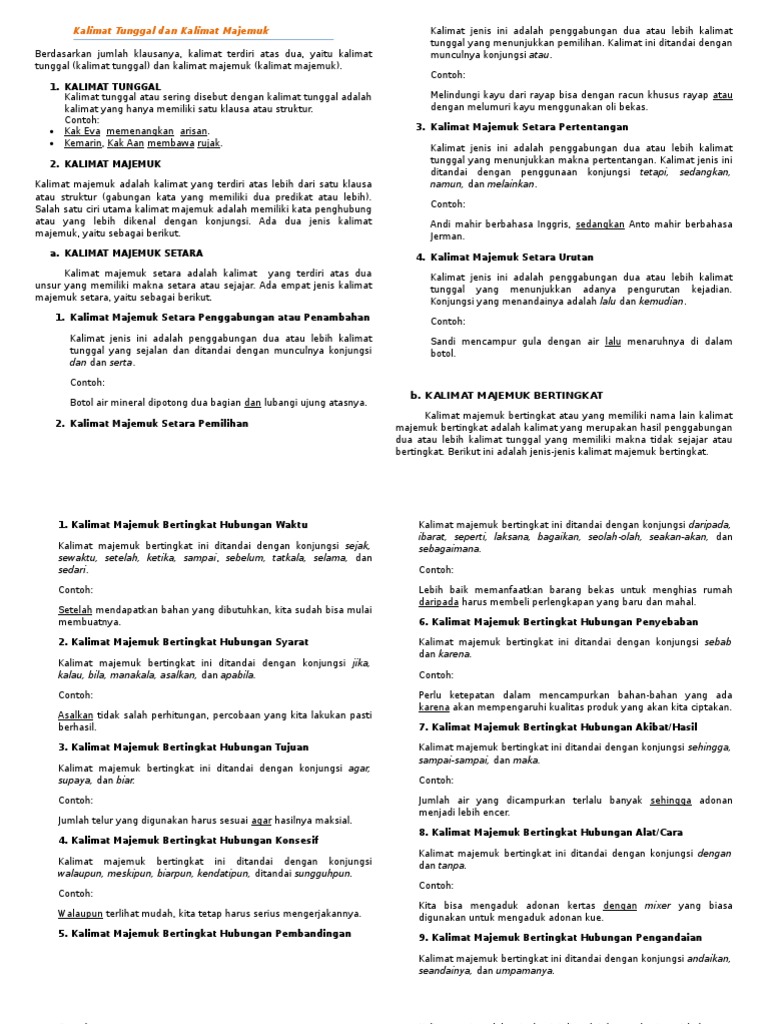 Kalimat Majemuk Pengertian Contoh Setara Bertingkat Campuran