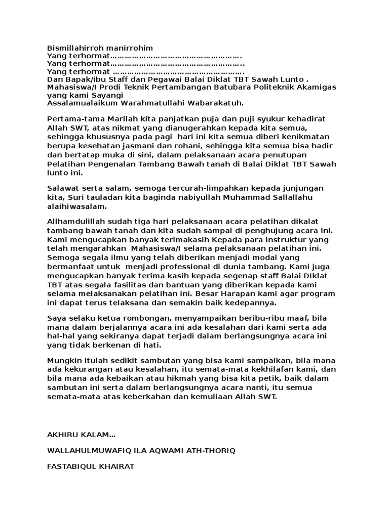 Contoh Soal Dan Materi Pelajaran 2 Contoh Kata Sambutan Pembukaan Acara Pelatihan