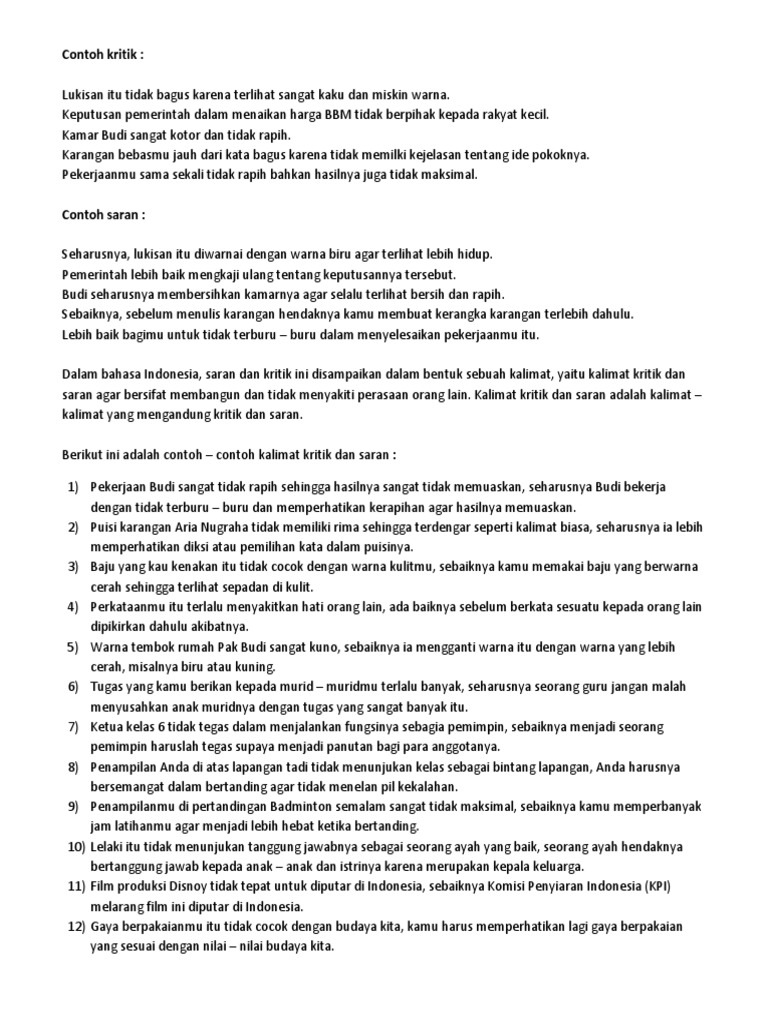 Contoh Kritik Dan Saran Bahasa Indonesia Pengertian Unsur