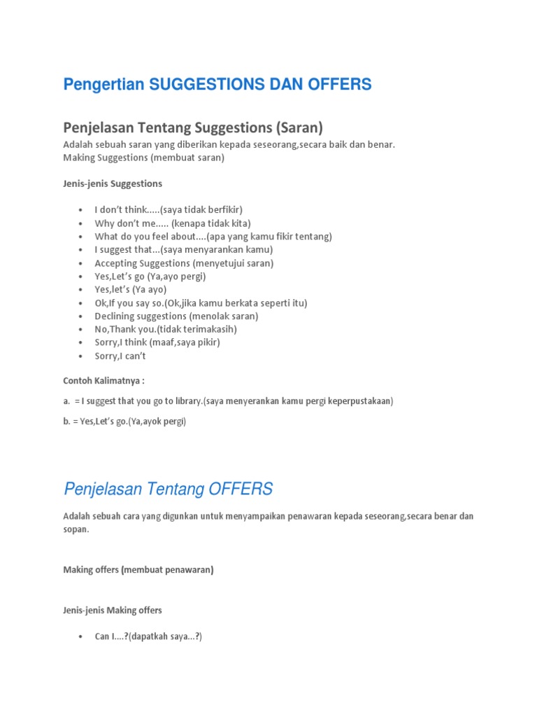 Pengertian Suggestions Dan Offers