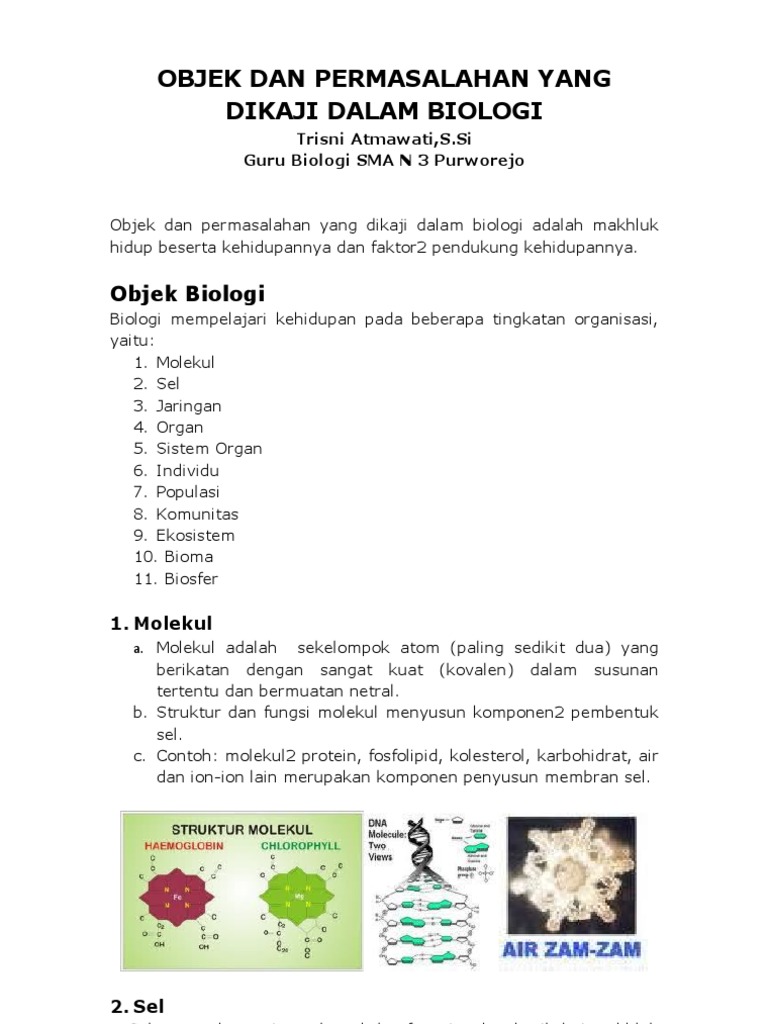 Objek Dan Permasalahan Yang Dikaji Dalam Biologi