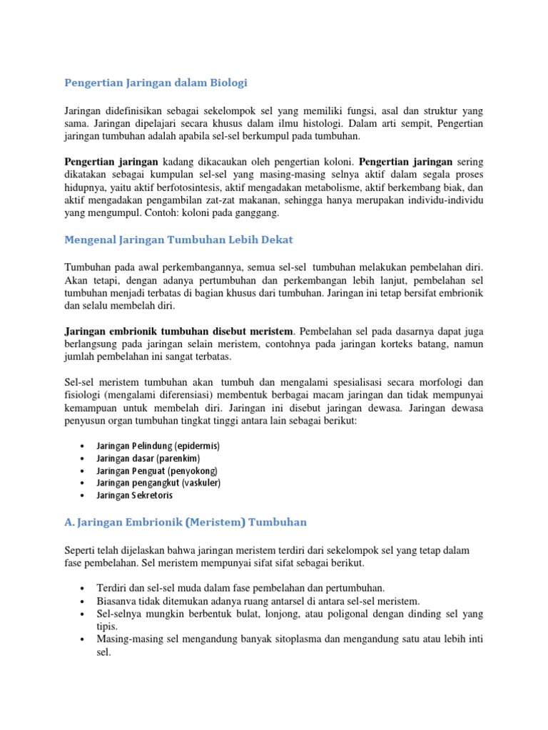 Pengertian Jaringan Dalam Biologi Lengkap