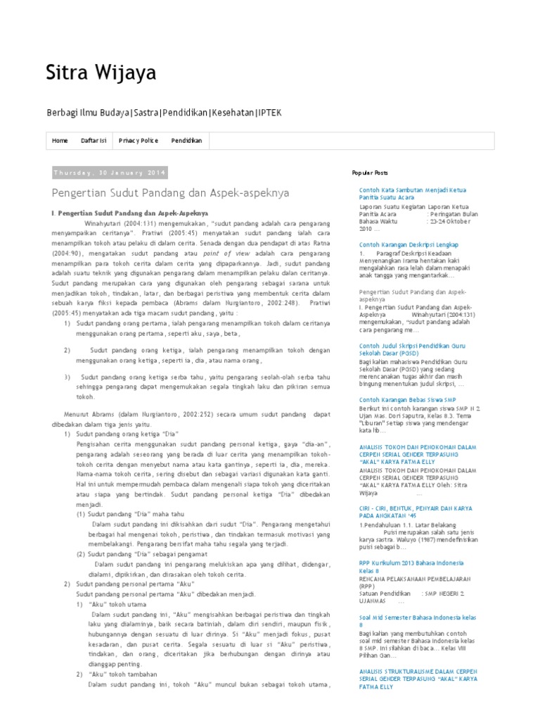 Sitra Wijaya Pengertian Sudut Pandang Dan Aspek Aspeknya