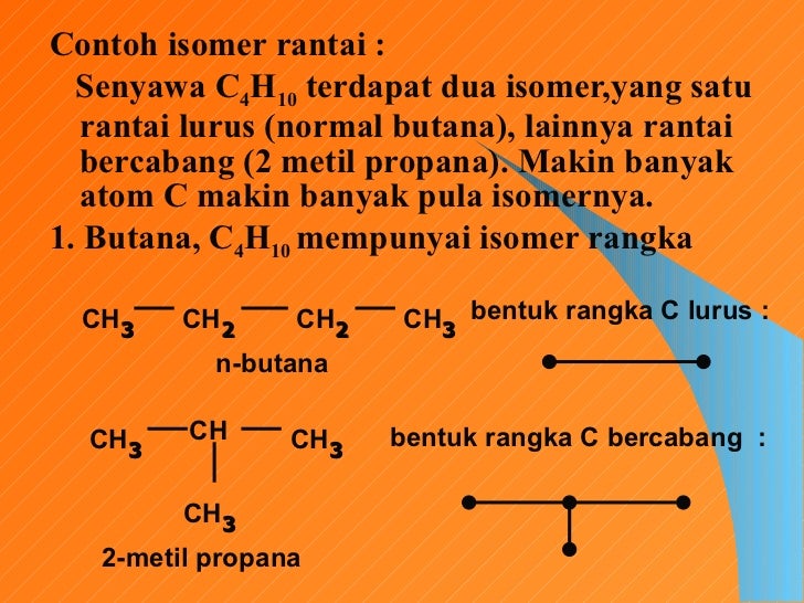 Keisomeran Isomer Senyawa Yang Berbeda Tetapi Mempunyai Rumus Molekul Sama Contoh Senyawa Dengan Rumus C4h10 N Butana T D 0 5 C Isobutana 2 Metil Ppt Download