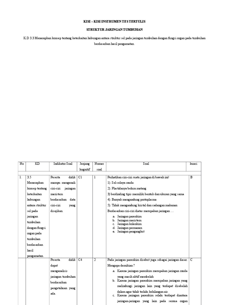 Contoh Soal Struktur Dan Fungsi Jaringan Kelas Xi Mipa Sma Dengan Tingkat Taksonomi Bloom