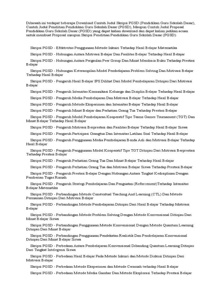 Judul Skripsi Jurusan Pendidikan Guru Sekolah Dasar Pgsd 2 Gudangmakalah