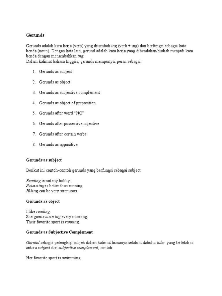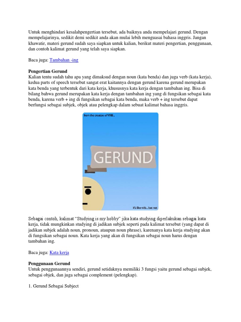 Materi Gerund Lengkap Pengertian Jenis Fungsi Rumus Dan Contoh Kalimat Dindin Id