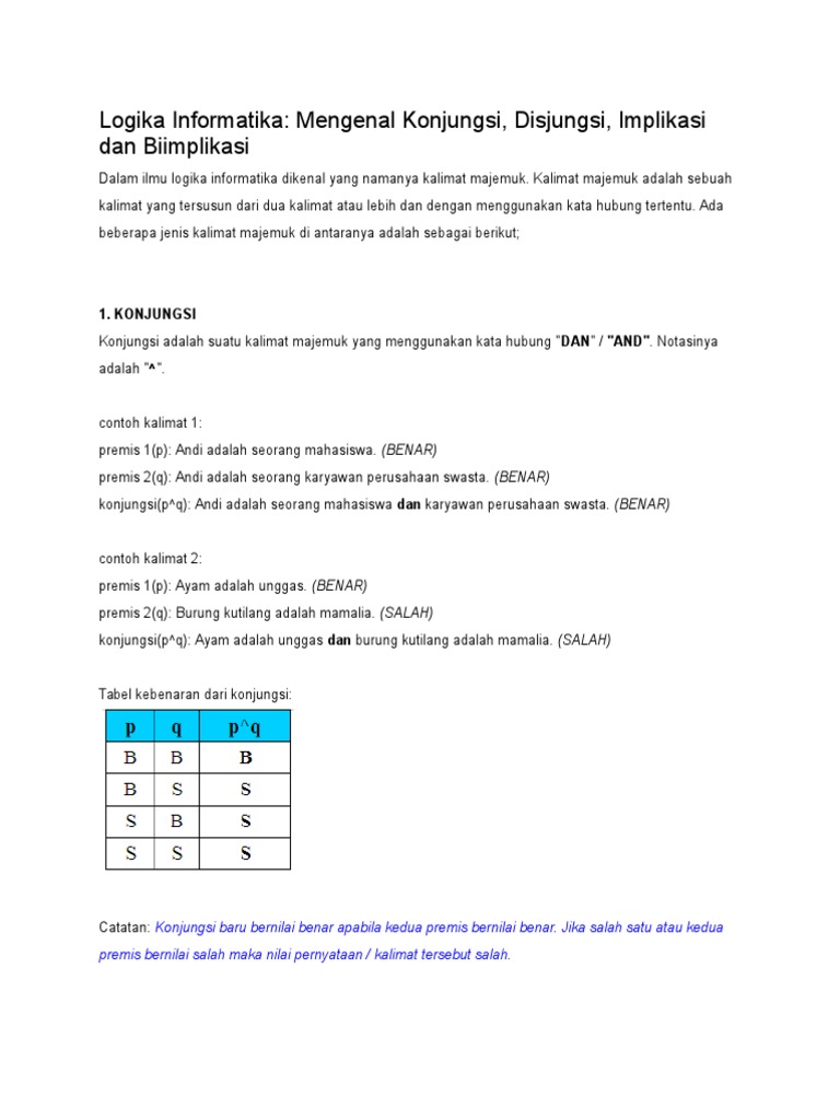 Konjungsi Disjungsi Implikasi Dan Biimplikasi Catatan Informatika