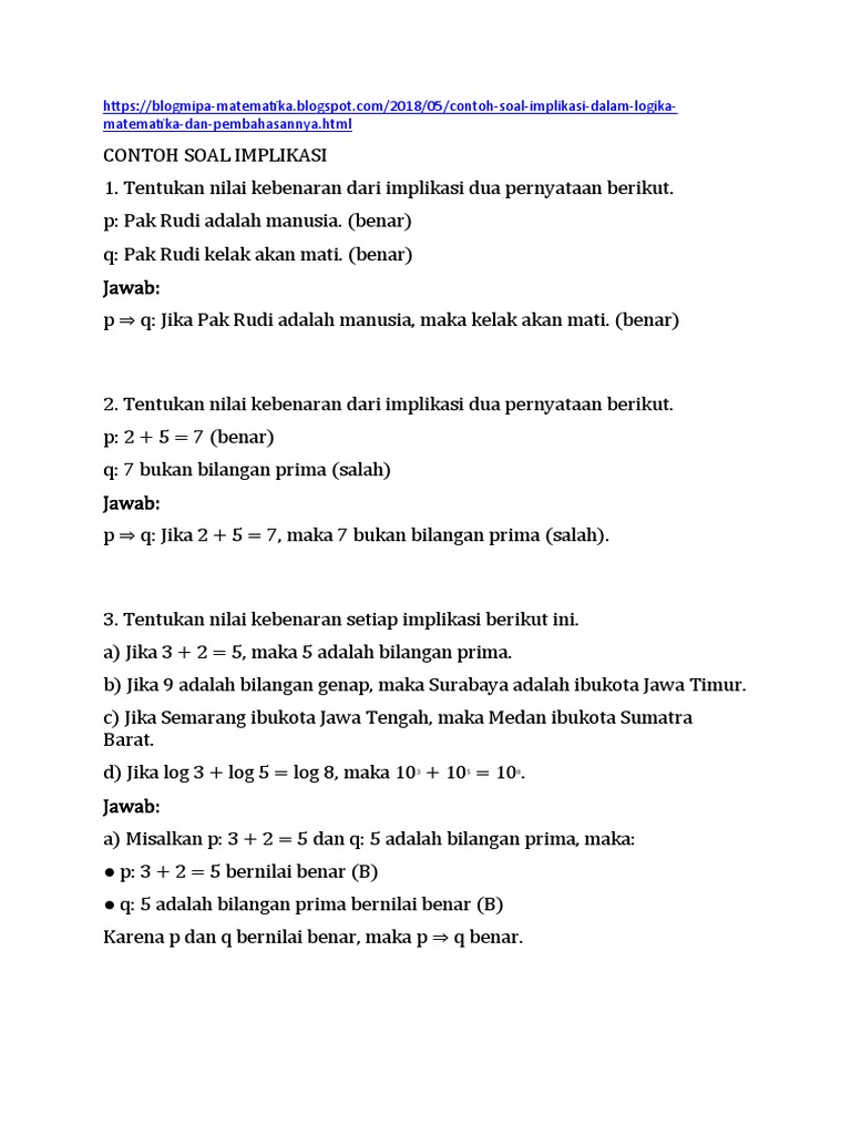 Kumpulan Contoh Soal Implikasi Dalam Logika Matematika Dan Pembahasannya Blog Matematika