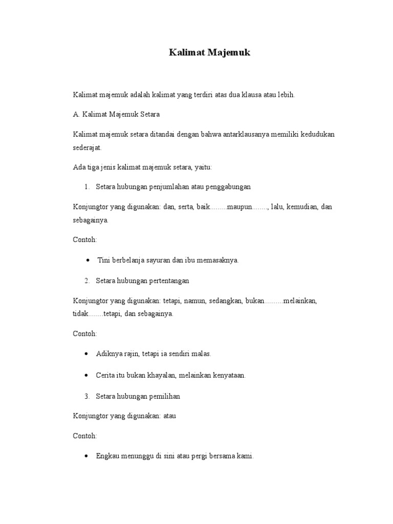 45 Contoh Kalimat Majemuk Setara Dan Pengertiannya Operator Sekolah