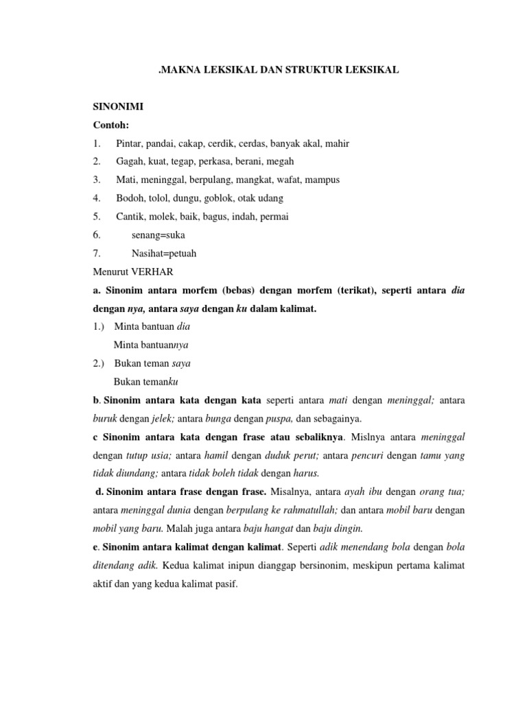 Contoh Makna Leksikal Pengertian Dan Contoh B Indonesia