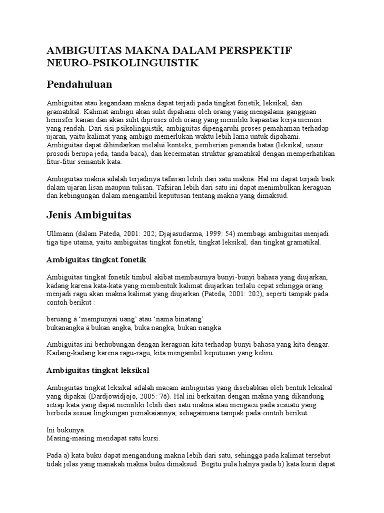 Ambiguitas Makna Dalam Perspektif Neuropsikolinguistik