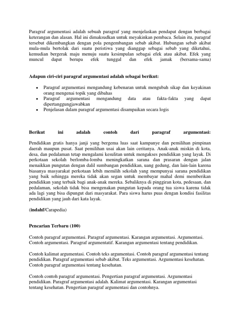 Contoh Paragraf Argumentasi Sekolah Carapedia