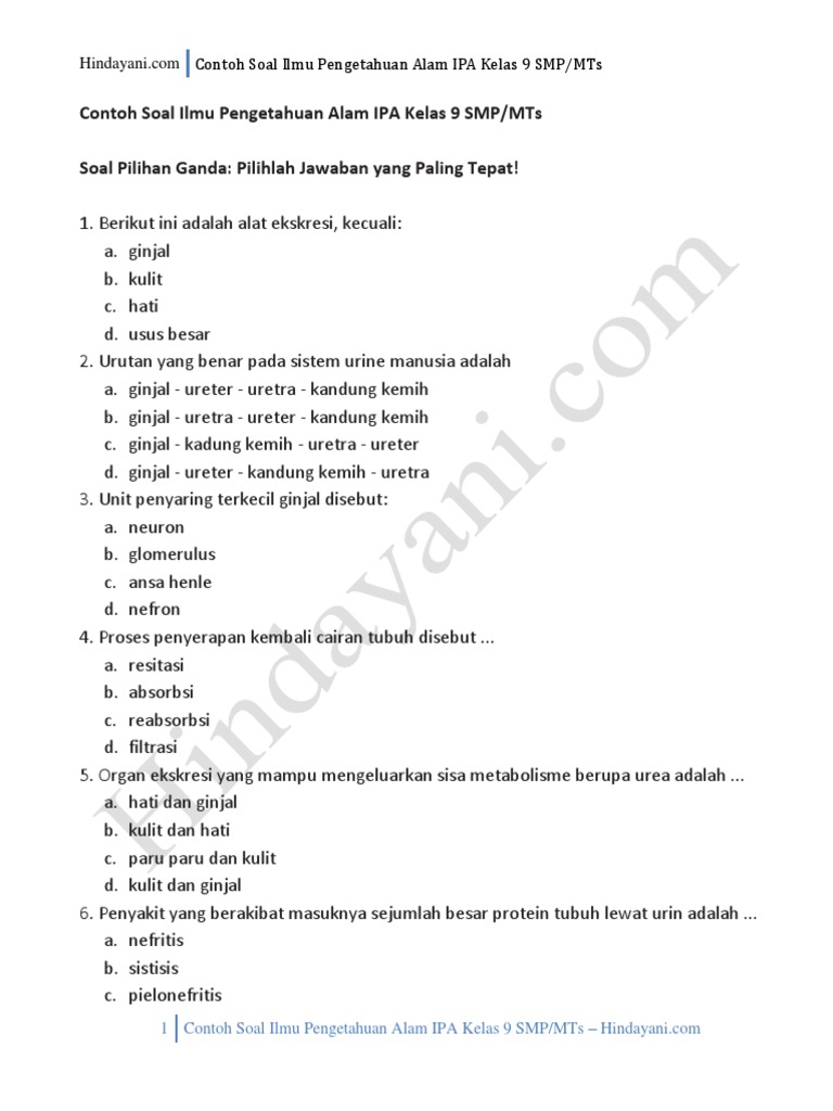 Contoh Soal Ilmu Pengetahuan Alam Ipa Kelas 9 Smp Mts Hindayani Com Contoh Soal Ilmu Pengetahuan Pdf Document