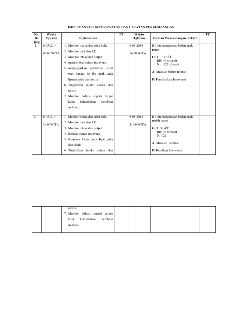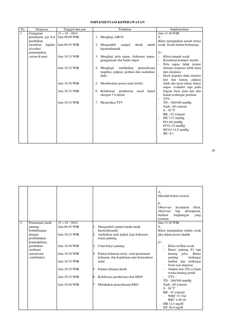 Contoh Tabel Perencanaan Dan Implementasi Keperawatan