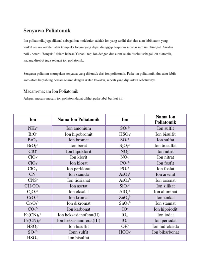 Doc Daftar Kation Dan Anion Ion Monoatom Dan Poliatom Lengkap Eko Prasetyo Academia Edu