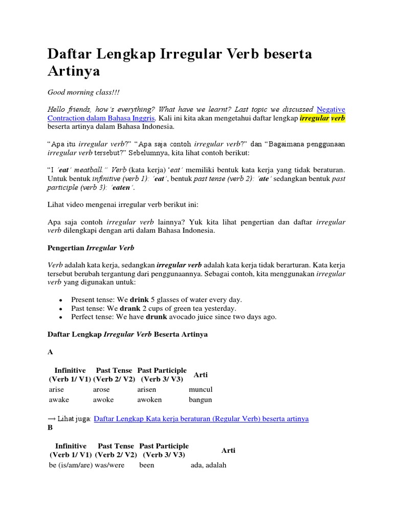 Daftar Regular Verb Dan Irregular Verb Arti Bahasa Indonesia Educacion