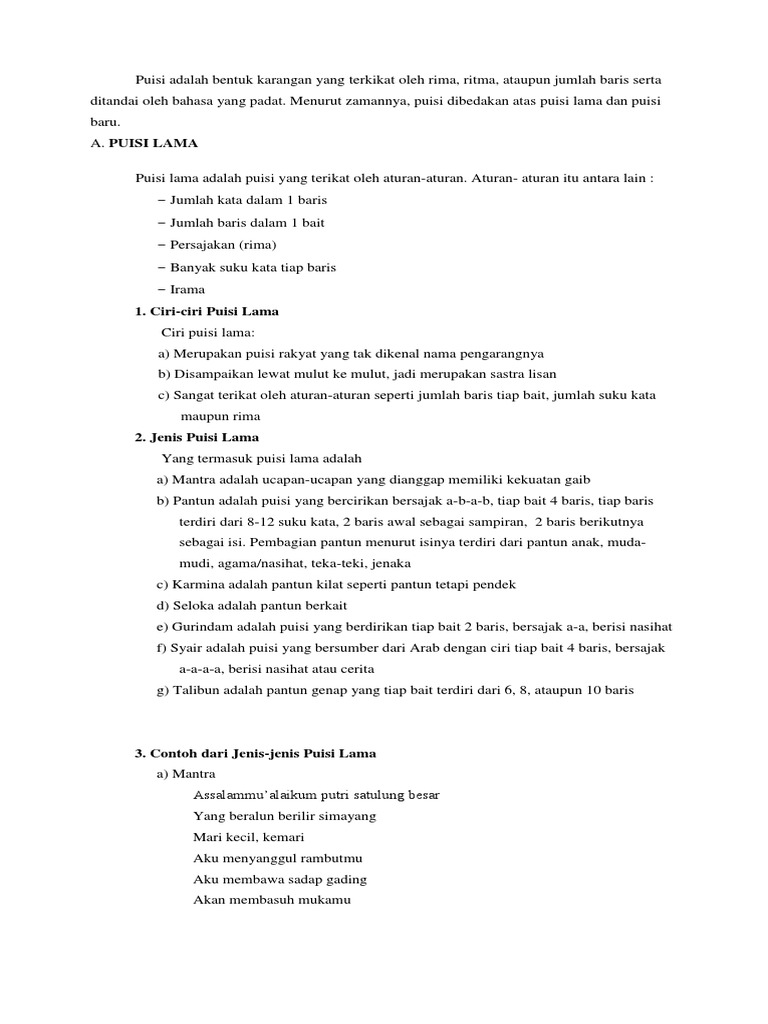 Doc Contoh Puisi Lama Dan Pengertiannya Boni Asri Academia Edu