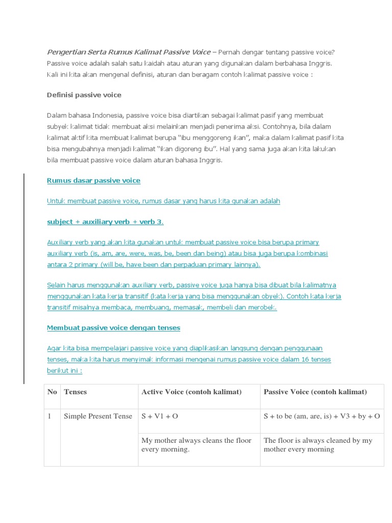 Passive Voice Pengertian Rumus Penggunaan Dan Contoh Kalimat Dindin Id