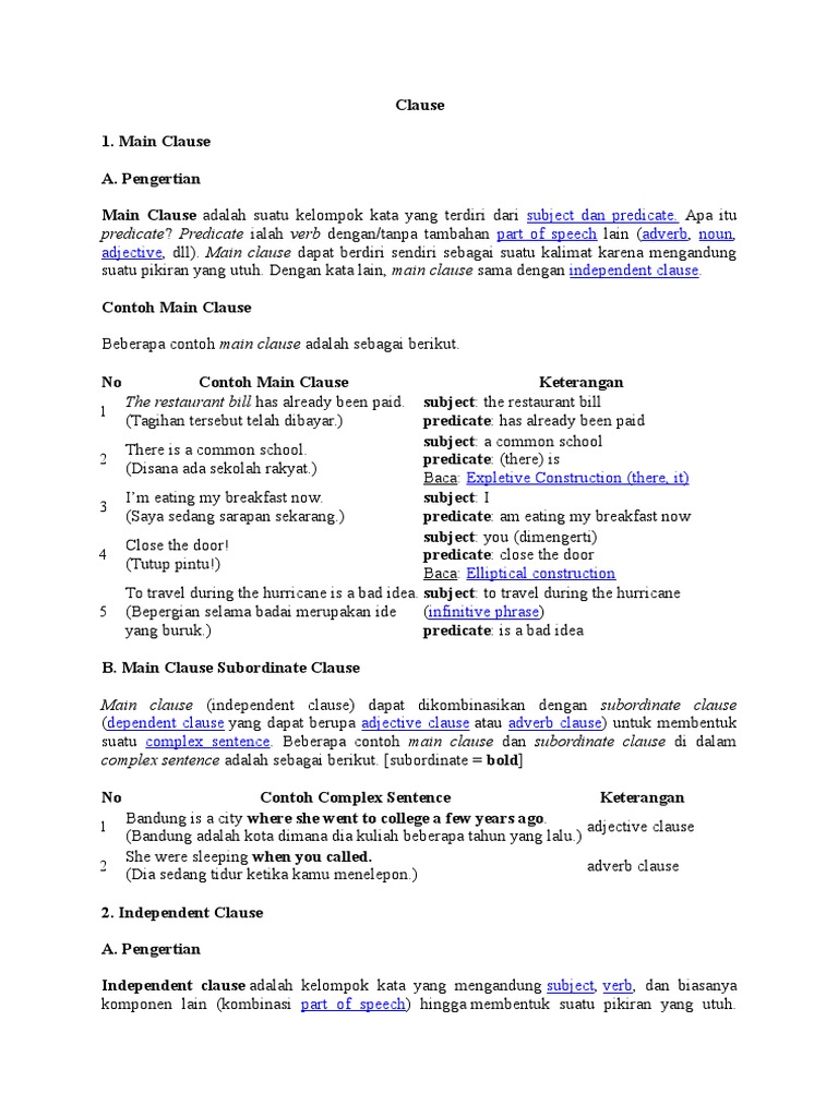 Pengertian Dan Contoh Kalimat Independent Clause Docx Document