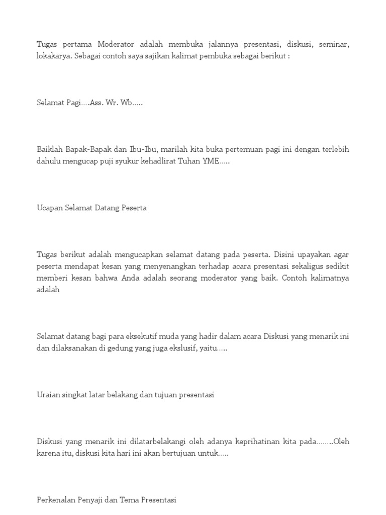 Pdf Contoh Teks Pembukaan Saat Diskusi Oleh Moderator Dani Ramdani Academia Edu