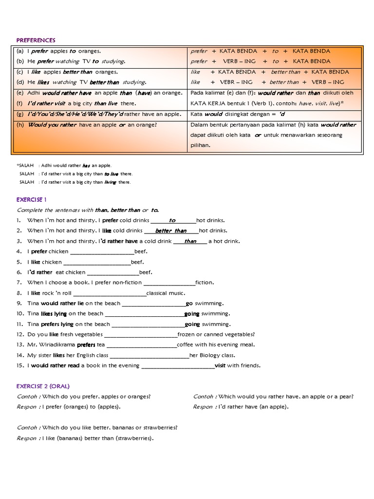 Rumus Dan Penggunaan Preference Dalam Kalimat Bahasa Inggris Lengkap Dengan Contoh Soal Dan Jawaban