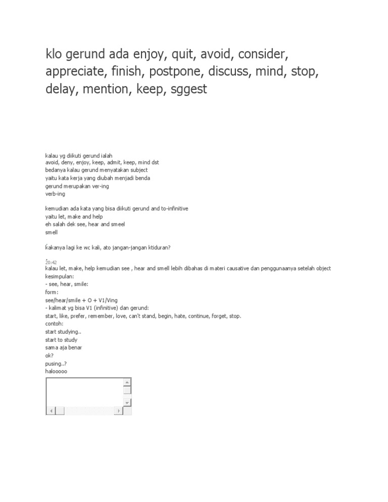 Klo Gerund Ada Enjoy Quit Avoid Consider Appreciate Finish Postpone Discuss Mind Stop Delay Mention Keep Sggest
