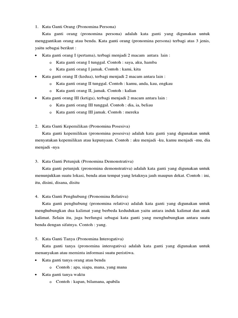 Kata Ganti Pronomina Pengertian Ciri Jenis Contoh Cah Kutawaringin