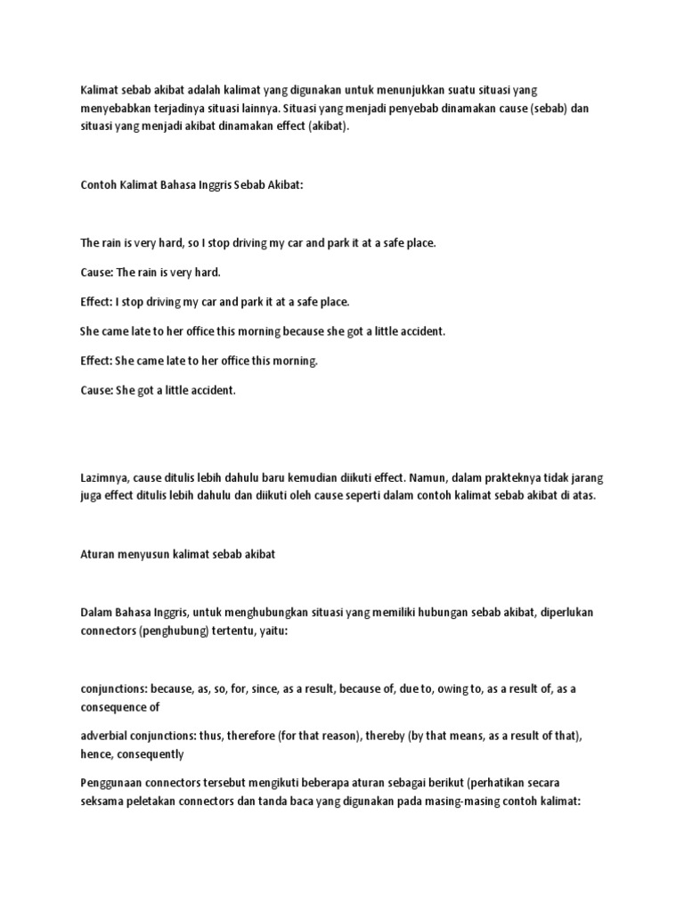Contoh Kalimat Sebab Akibat Dalam Bahasa Inggris
