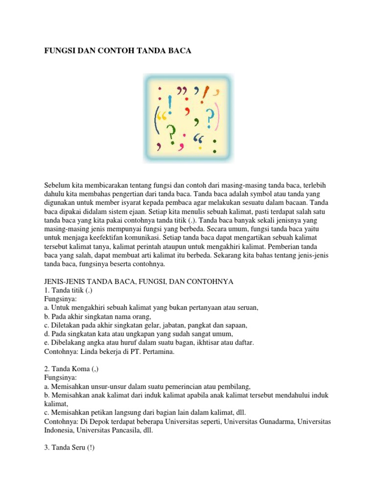 Tanda Baca Pengertian Fungsi Jenis Contoh