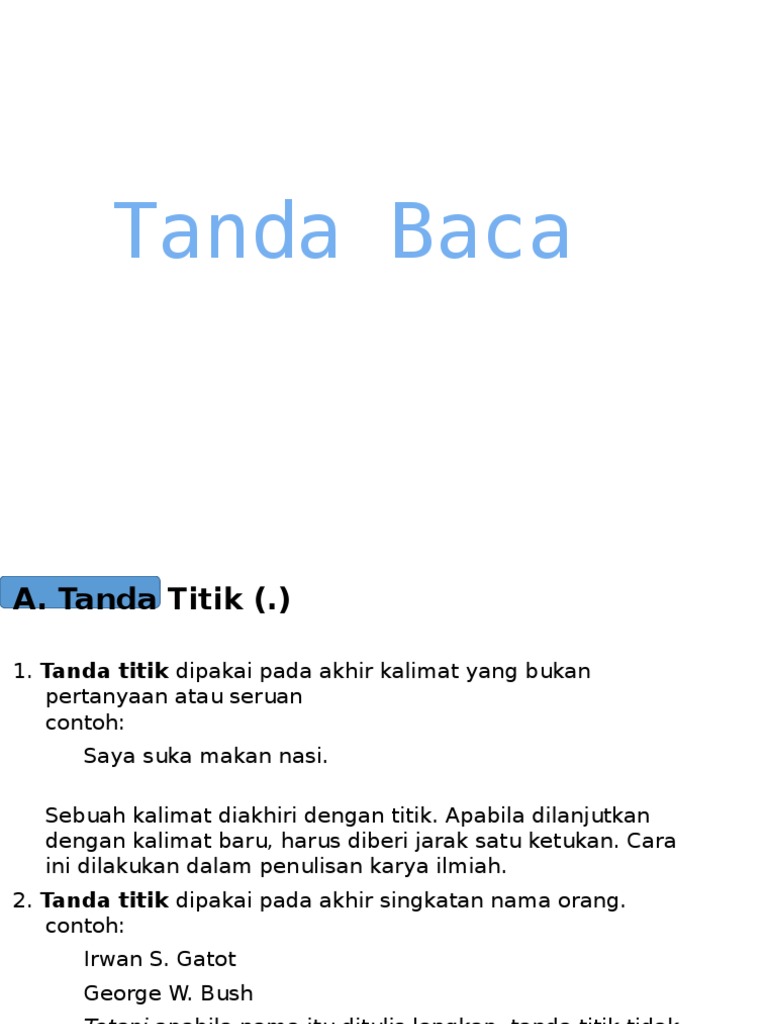 Tanda Baca Tanda Titik Selalu Dipakai 1 Pada Akhir Kalimat Ppt Download
