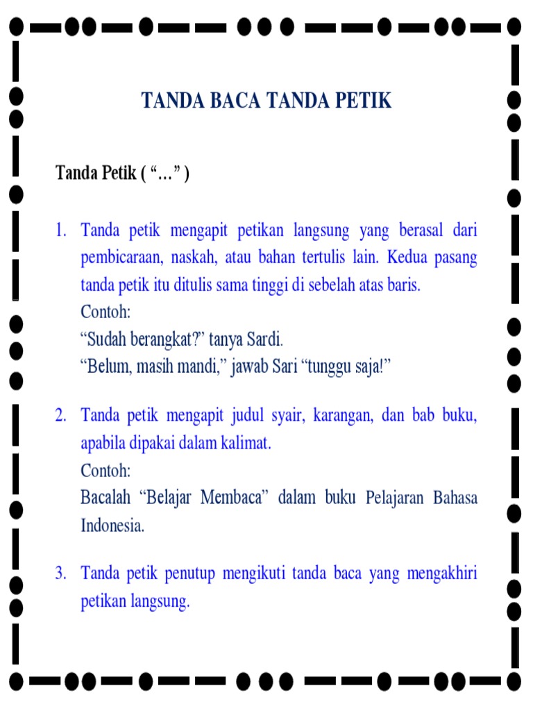 Tanda Baca Tanda Petik Dalam Bahasa Indonesia